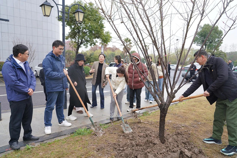 活動現(xiàn)場,氣氛熱烈。大家分工合作,配合默契,揮鍬鏟土、扶苗填坑、澆水灌溉,每一個環(huán)節(jié)都一絲不茍,認真細致。經(jīng)過一番辛勤勞動,兩棵新栽種的樹苗迎風挺立,為初春的大地增添了一抹新綠。