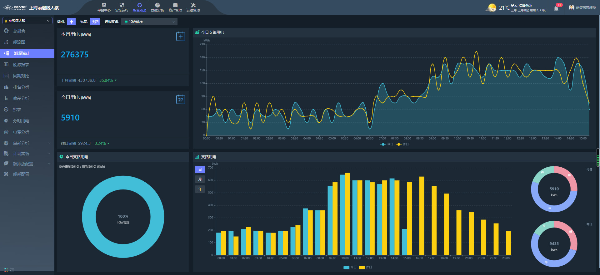 傳統(tǒng)企業(yè)的能耗管理沒有統(tǒng)一的監(jiān)管方式,數(shù)據(jù)統(tǒng)計(jì)不集中,各種能耗之間信息不互通,無法形成統(tǒng)一有效的管理;對能源流向的管理沒有實(shí)時數(shù)據(jù),無法及時發(fā)現(xiàn)一些能源浪費(fèi)的問題存在,造成無需求區(qū)域能源的流失;傳統(tǒng)的能耗管理方式依靠人工巡檢、手動抄表,無法對用能規(guī)律進(jìn)行自動化統(tǒng)計(jì)分析,管理效率低;沒有預(yù)警、預(yù)防、預(yù)測機(jī)制,跑冒滴漏現(xiàn)象普遍存在而沒有及時發(fā)現(xiàn),存在安全隱患。凡特根據(jù)正泰啟迪智電港的情況,為其打造一套專業(yè)的智慧能源管理系統(tǒng)。