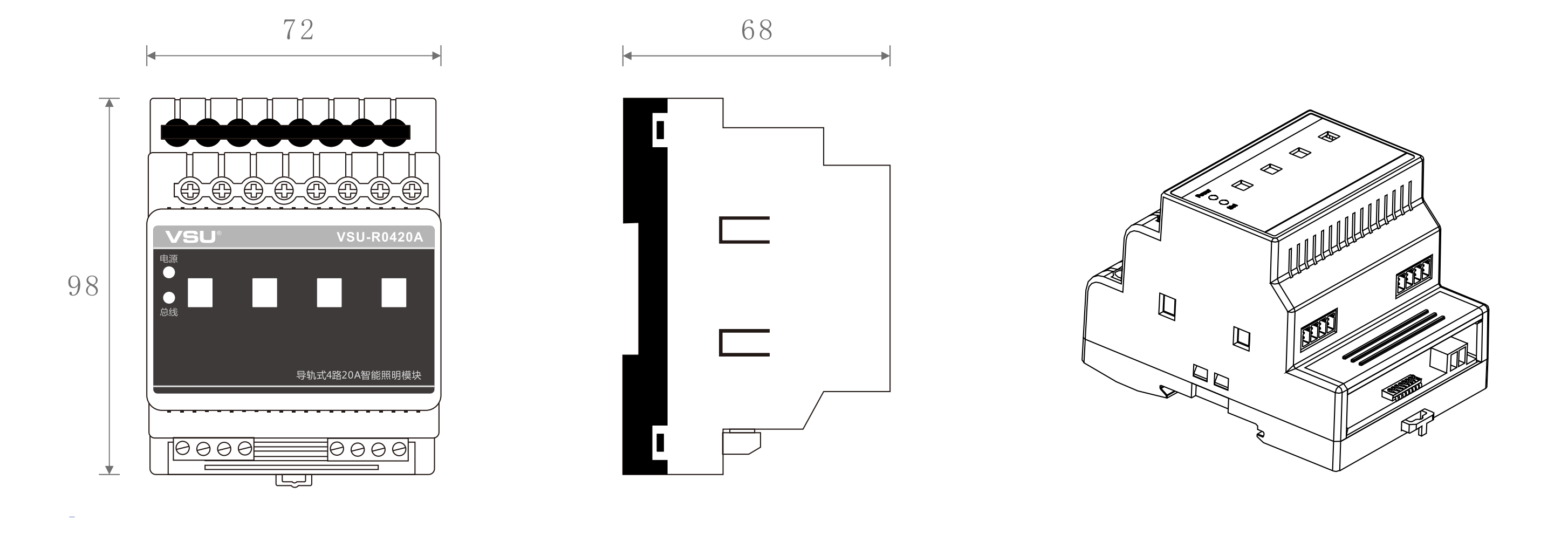 1,標(biāo)準(zhǔn)導(dǎo)軌式安裝占4個模數(shù)位;