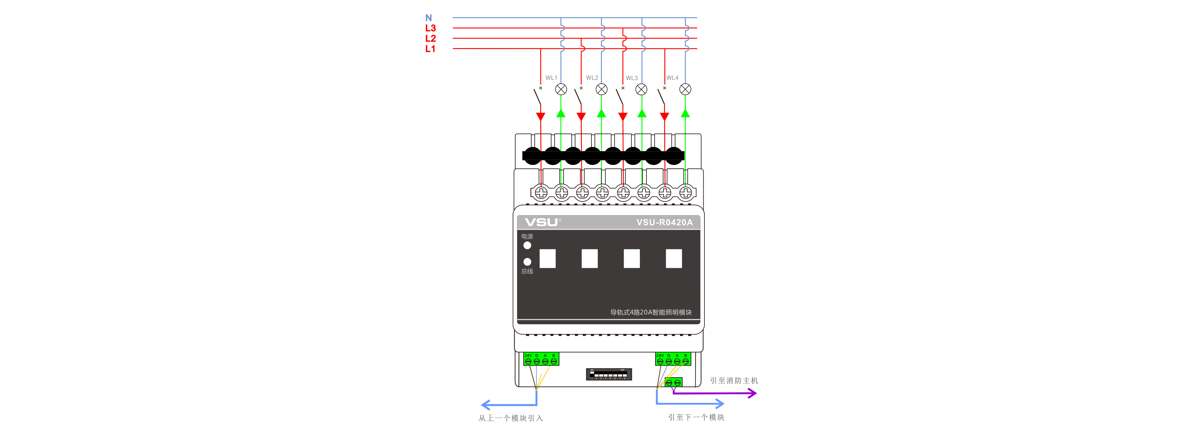 本產(chǎn)品為導(dǎo)軌式安裝,含4路智能繼電器,每回路可獨立控制4400W燈具的開關(guān),帶強切功能和互鎖功能。 |