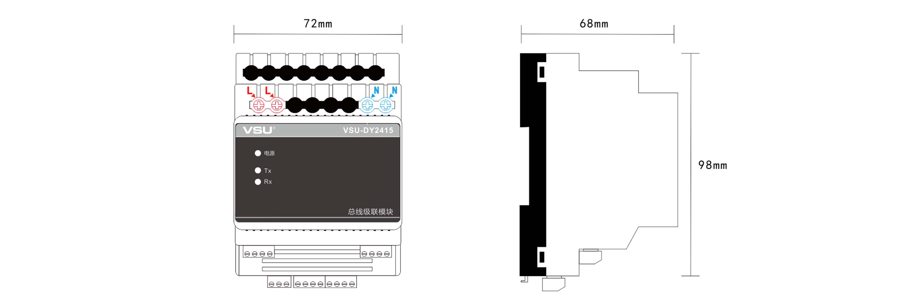3,導(dǎo)軌式安裝,占4個模數(shù)位,符合VSU-Net總線標(biāo)準(zhǔn);